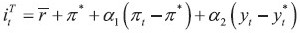 where ![]() ![]()  and yt − y*t denote, respectively, the policy interest rate, the equilibrium interest rate, the inflation rate, the inflation target, and output gap. In Indonesia, the central bank adjusts its policy interest rate ( a71) whenever there are sharp movements in the rupiah exchange rate, as exchange rate stability is an integral part of its efforts to support low and stable inflation.