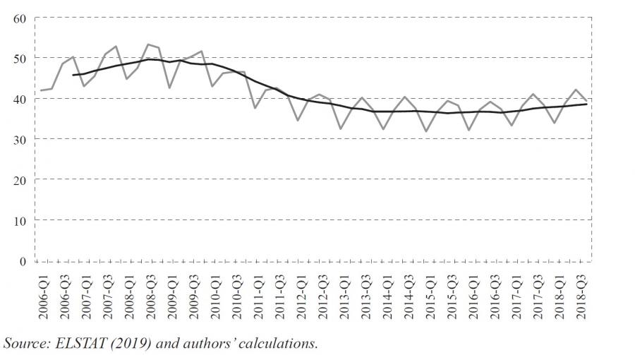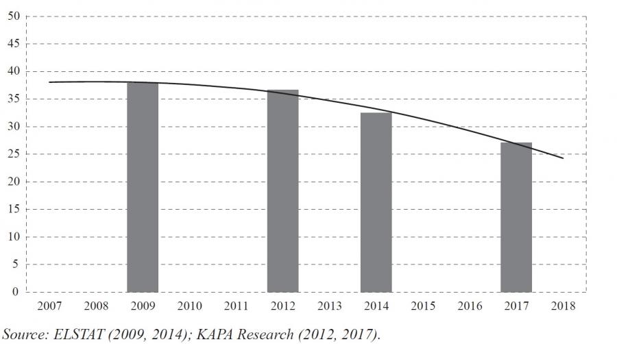 Furthermore, excise duties cannot alone fulfil the objective of government policy – to “maximise social welfare” by eliminating smoking. Some believe that an information campaign may yield better results. For example, the results of the anti-smoking campaign in Greece are shown in figure A12, showing that the percentage of smokers in the population has decreased significantly over the last 10 years (ELSTAT, 2009, 2014; KAPA Research, 2012, 2017).