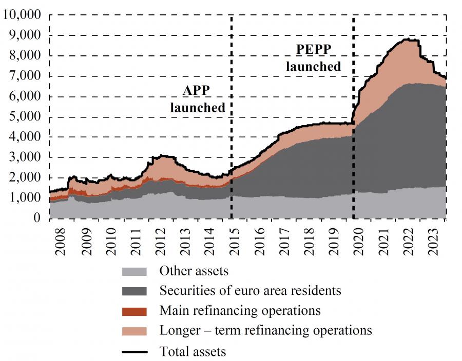 In addition, with the benefit of hindsight, the implementation of large-scale asset purchase programs seemed to have lasted too long both in the US and the euro area, which made it more difficult for their central banks to tackle inflation once it spiked. While the ECB and the Fed successfully tightened their monetary policies starting from 2022, this tightening came at a cost of a substantial transfer of interest to commercial banks which was both costly and highly unpopular. Having learned this lesson, it seems unlikely that their balance sheets will expand again to the levels reached following the COVID-19 pandemic. Both central banks have by now started downsizing their balance sheets, with the aim of moving permanently to regimes with less abundant reserves.