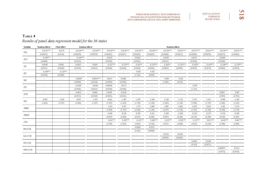 Table 4Results of panel data regression model for the 36 states DISPLAY Table