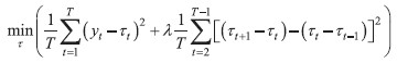 Hodrick and Prescott ( 1997) decompose a time series into its trend and stationary components using the following optimization procedure:  | (2) |