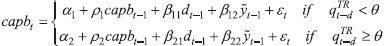 Our threshold autoregression model allows for two regimes depending on the endogenously selected threshold value θ:  | (6) |