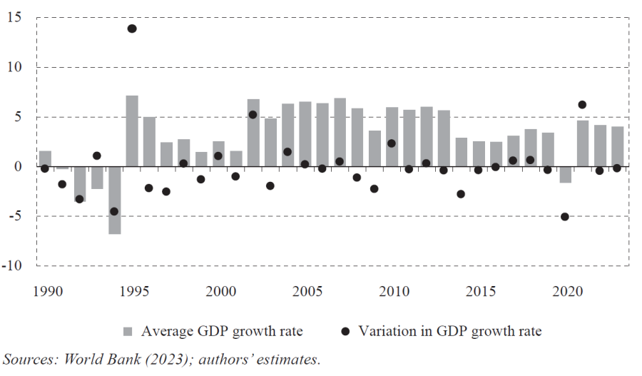 Graph 1Growth performance of Sub-Saharan African countries, 1990-2023 DISPLAY Graph