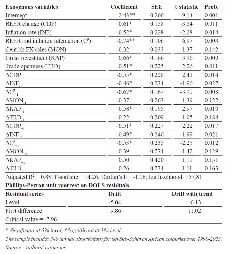 The data sample consists of annual observations for the ten Sub-Saharan African countries noted above over the period 1990-2023. Data sources for the variables are the World Bank’s Open Database (GDP growth and inflation), World Development Indicators (gross fixed capital formation and trade openness), St. Louis Federal Reserve Bank’s FED statistics and OECD Statistics (for real effective exchange rates), and central bank and national statistical databases (for central bank foreign exchange sales and foreign reserves). Foreign exchange sales are calculated from the annual data series on central bank weekly interventions via auctions and direct sales in individual countries’ interbank markets.