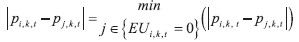 The estimated probability of receiving support from EU funds is used in the second step for enterprise matching. The probability of starting a project that is cofinanced from EU funds for enterprise i in sector k in period t is labelled pi,k,t. One or several control enterprises j with the smallest absolute difference in the estimated propensity score is then matched with the enterprise that received the treatment by using the nearest neighbour method.  | (3) |