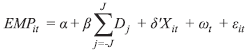 29 It is important to remember that in the event study models I have used specific dummies referring to j periods away from the reform but related to the individuals’ employment contract date, whereas in the probit regressions reform variables are just dummies indicating 1 after the reform occurred and 0 before that (not specifically related to the time of the contract).