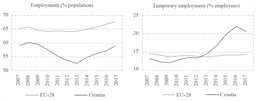 Still, one must not disregard the effects that the labour legislation reform had on the incidence of temporary employment and on the overall trends on the Croatian labour market. This is not only the case for different forms of employment, but it can have larger effects on the formation of human capital, increasing inequalities, and even further encouraging outward migration. Sound policy evaluation, both ex-ante and ex-post, is notably absent in Croatia, while at the same time legislation is constantly changing. As the labour legislation reforms from 2013 and 2014 were mainly induced from the outside, that is, by the need to harmonise Croatian regulations with those of the EU, the lessons learned in the case of Croatia might be valuable for candidate and future accession countries.