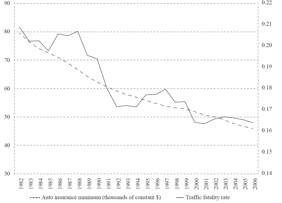 Keywords: traffic fatalities; auto insurance; minimums; moral hazard