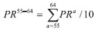 Similarly, the aggregate participation rate of the age group 55-64, PR55-64, is related to single-age participation rates as:  | (A3) |