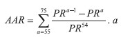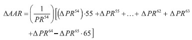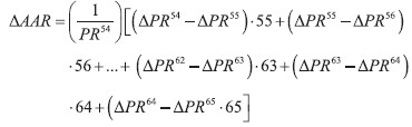 9 See Scherer ( 2002) for a proof of this static formula, which requires only cross-sectional data. He also points out that that this static calculation will be different and potentially misleading compared to a dynamic calculation that allows for the evolving age structure of the population. The static calculation is used here because of it computational simplicity and because the only interest here is in evaluating the effect of a marginal change in the AAR in response to a policy change.