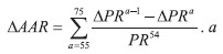 But if everyone is assumed to retire between the ages 55 and 64, ΔPR54 = ΔPR65 = 0 then:  | (A21) |