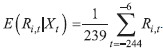 The basic assumption of the mean adjusted returns model is that the vector of explanatory variables Xt is constant (independent of time t). The expected return (E(Ri,t|Xt)) on the stock of insurance company i can be written as average actual return on the stock of insurance company i:  | (2) |