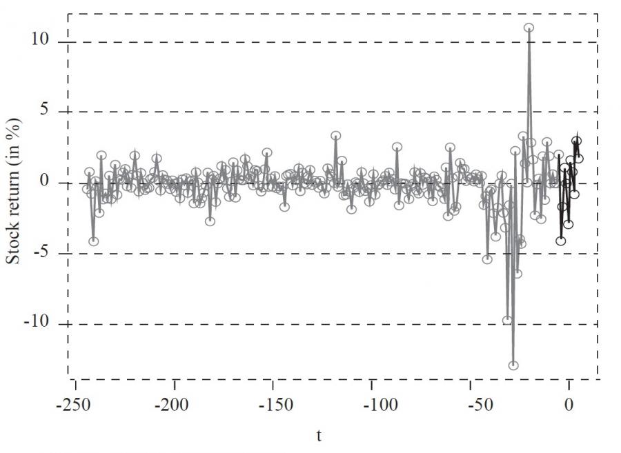 This finding was supported a couple of years later by Brown and Warner ( 1980; 1985), who used a more modern methodology. Moreover, they added that the daily stock returns differentiated substantially from the usual stock returns in the measures of shape – skewness and kurtosis. They upgraded the already existing research with a random selection of event dates and stocks to simulate event study without any assumption about the distributions of stocks returns. Subsequent event studies, mostly conducted in the new millennium, also examined other events, with particular focus on events in companies (such as changes in the management, the amendments to the Statute, mergers and acquisitions, and others).