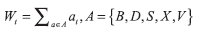 where A is the set of indicators for the number of military events (battles, air/drone strikes shelling attacks, other (explosive) attacks and violence against civilians); Wt is the total number of military events at time t; and ɑt is the number of specific military events at time t.