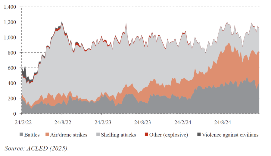 Graph 3Dynamics of military events in Ukraine, Feb 2022 – Feb 2025 (number of events) DISPLAY Graph